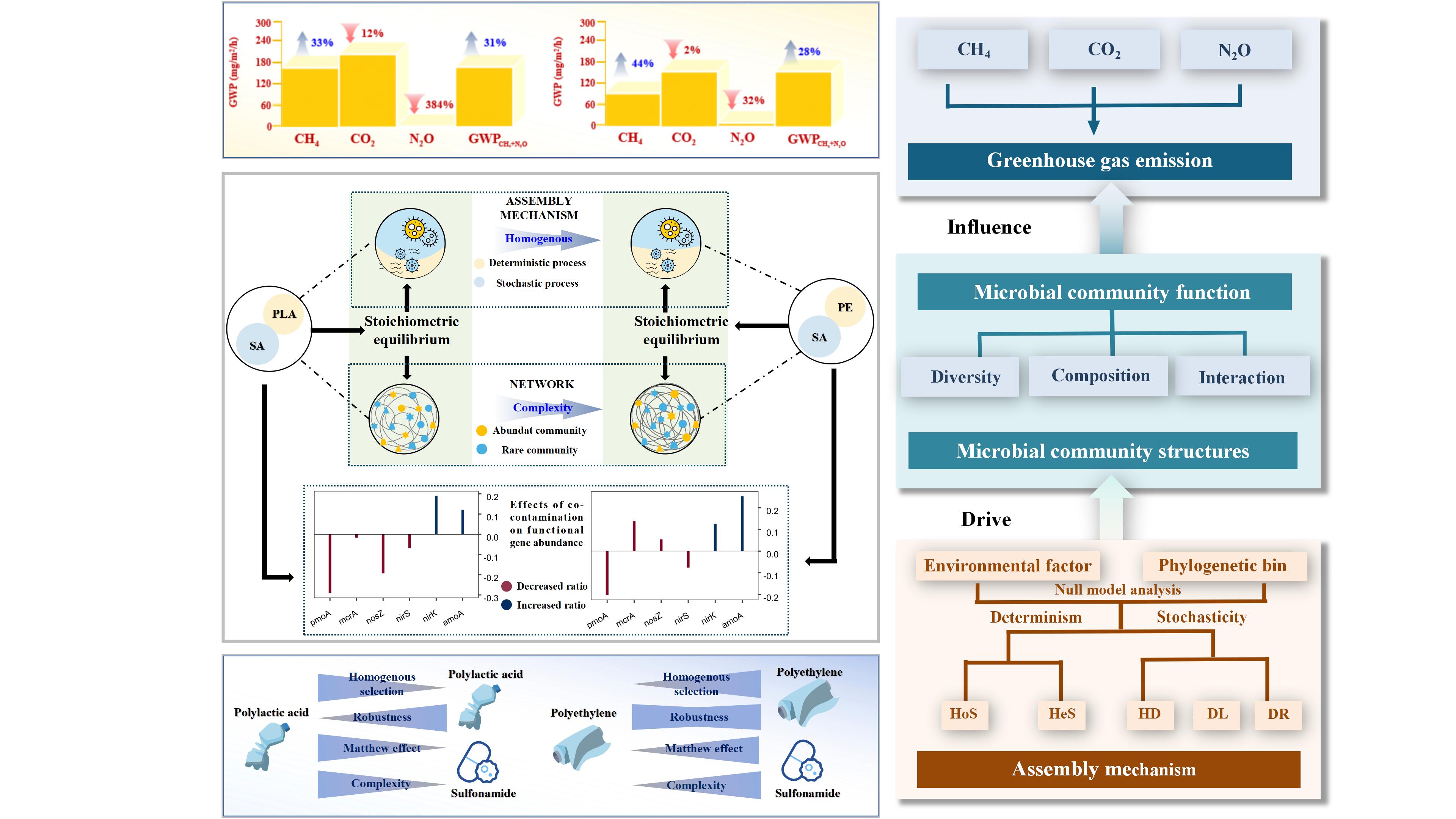 該研究在揭示微塑料和抗生素復合污染對溝渠沉積物中碳氮氣體排放影響的基礎上,結合生物信息學方法探索了微生物群落在應對復合污染時的動態演替和功能適應性,研究結果可為評估農業溝渠等生態系統中新型污染物的潛在生態風險提供科學參考。