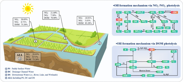 鹽堿地開發(fā)是緩解耕地資源短缺和實現(xiàn)糧食增產(chǎn)的重要途徑。水稻種植是鹽堿地農(nóng)業(yè)利用最主要的方式之一,但稻田的洗鹽排水過程會排放大量鹽堿離子、氮磷營養(yǎng)鹽等物質(zhì)進(jìn)入溝渠和下游河湖水體,對區(qū)域水生態(tài)安全造成威脅。活性中間體(RIs)在生態(tài)系統(tǒng)養(yǎng)分循環(huán)和污染物遷移轉(zhuǎn)化過程中發(fā)揮著關(guān)鍵作用,但其在鹽堿化農(nóng)業(yè)水體中的生成過程與機(jī)制尚不清楚,限制了對鹽堿化地區(qū)農(nóng)業(yè)水體中復(fù)雜污染物生物地球化學(xué)過程的理解。
