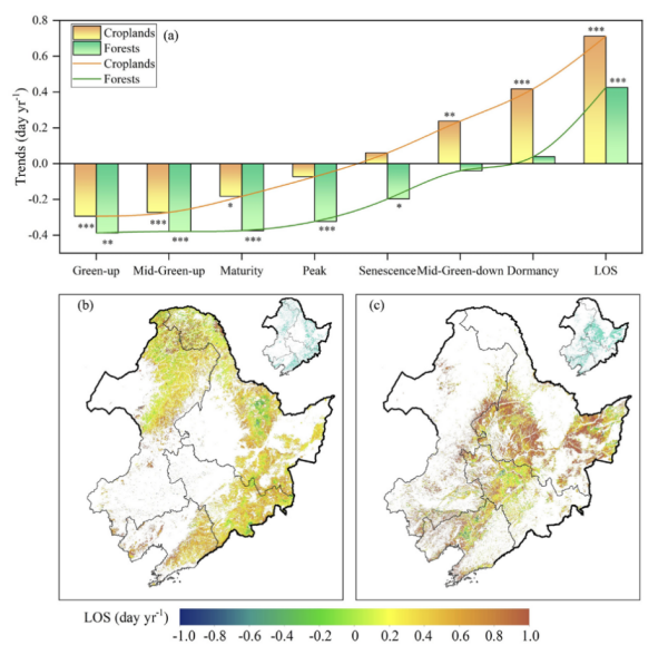 東北地理所在農田和森林物候對區域氣候的生物物理反饋差異及機制方面取得新進展