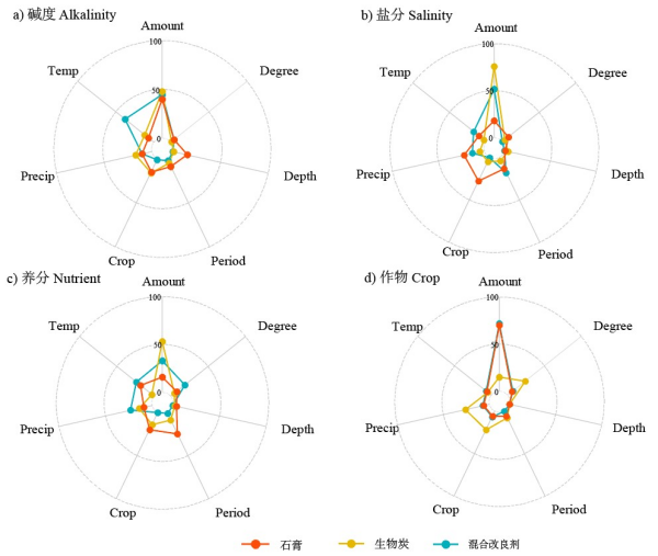 圖3不同改良劑應用效果的影響因素相對重要性解析