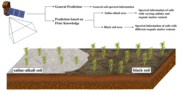 圖1. 基于先驗(yàn)知識(shí)并結(jié)合鹽堿和黑土區(qū)劃分的光譜信息選取示意圖