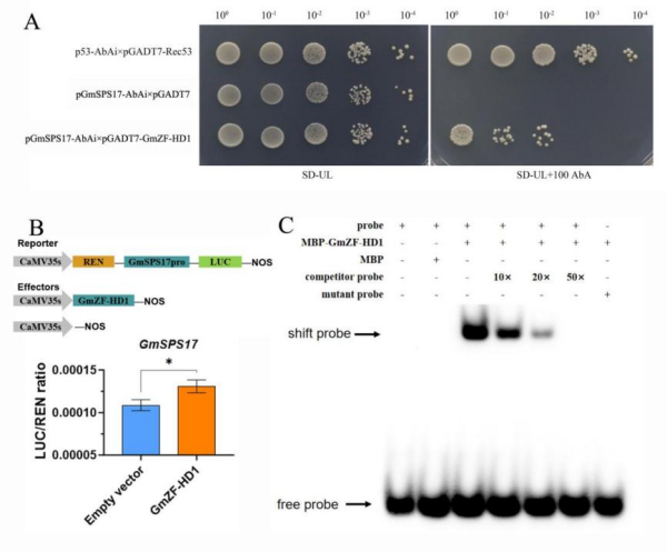 圖2?GmZF-HD1調(diào)控GmSPS17表達(dá)