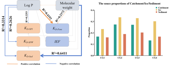 盡管冰封湖泊占全球湖泊總量的半數(shù)以上,但它們在淡水系統(tǒng)研究文獻中的關注度卻不足2%。尤其值得注意的是,抗生素在這些系統(tǒng)中不同環(huán)境介質(zhì)間的環(huán)境行為特征、機制及關鍵驅(qū)動因素仍存在認知空白。我們前期研究發(fā)現(xiàn),冰封期抗生素濃度與生態(tài)風險顯著高于非冰封期,這主要歸因于結(jié)冰過程對于抗生素的壓縮效應——結(jié)冰過程中會使抗生素被大量擠壓濃縮至水層(Ju et al.,2023)。因此,揭示冰封條件下抗生素在不同環(huán)境介質(zhì)中的分配規(guī)律、環(huán)境行為特征及其關鍵驅(qū)動因素,對于深入揭示冰封湖泊脆弱生態(tài)系統(tǒng)中抗生素等新污染物的環(huán)境行為具有重要意義。