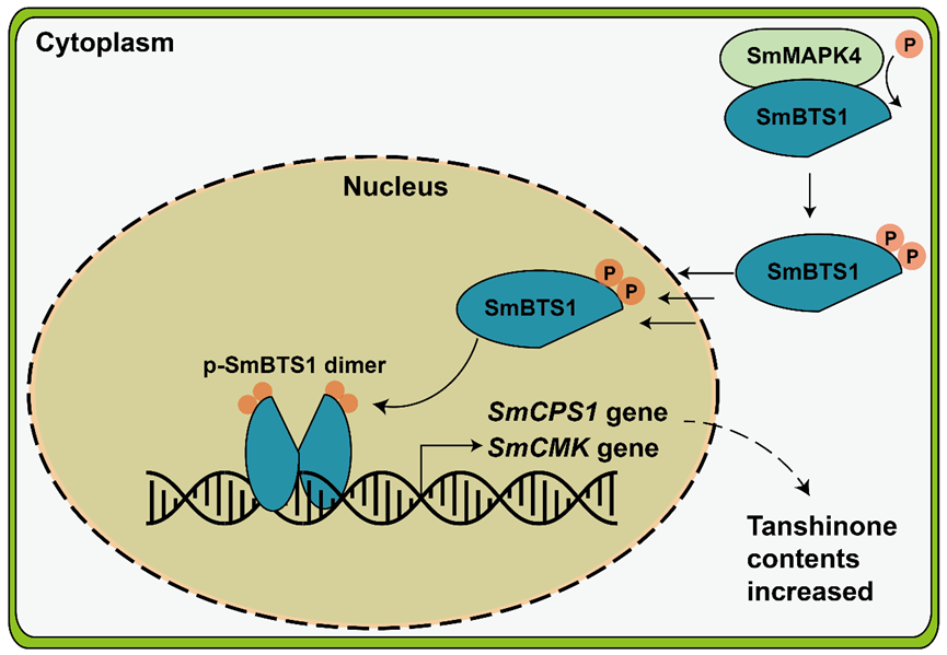 圖1. SmMAPK4-SmBTS1-SmCPS1促進(jìn)丹參酮合成作用模式圖