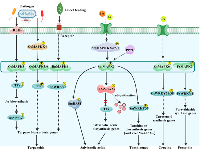 圖2. MAPK調(diào)控藥用植物活性成分合成的作用模式圖