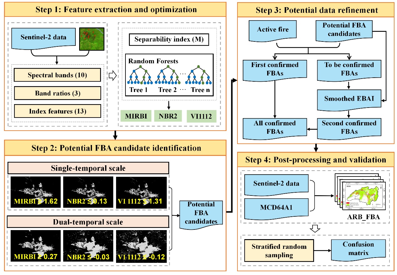 論文信息如下:Ren, H., Ren, C., Li, L., Wang, Y., Jia, M., Wang, Z., Xi, Y., Liu, P., Xia, C., Hou, Q., Ruan, X., 2026. Accurate forest burned area detection by integrating active fire data with enhanced sentinel-2 multi-temporal imagery. Int. J. Appl. Earth Obs. Geoinf. 146, 105163. https://doi.org/10.1016/j.jag.2026.105163