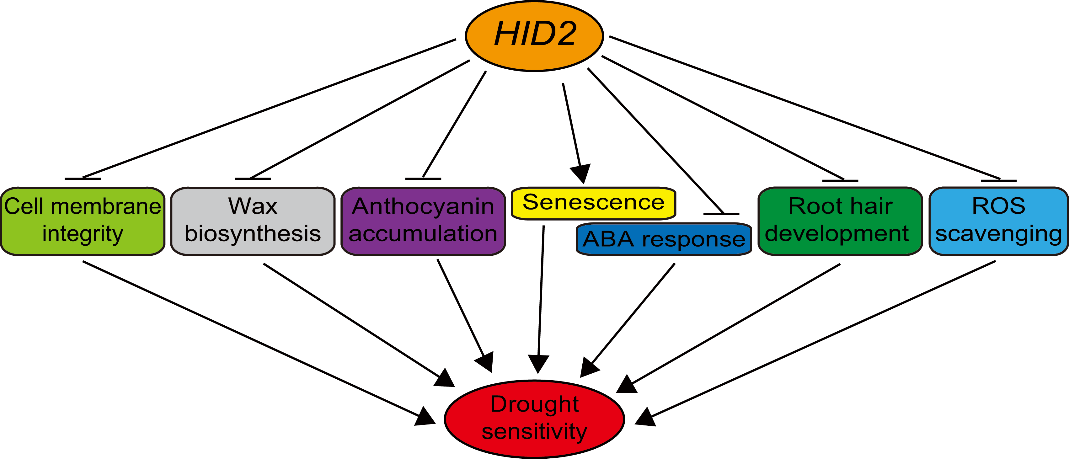 圖2. HID2負向調控擬南芥耐旱性的分子機制