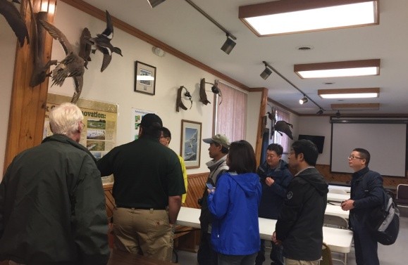 10月11-15日,考察組一行對(duì)密西西比河流域中游典型退化濕地恢復(fù)區(qū)進(jìn)行考察,主要對(duì)Mingo國(guó)家野生動(dòng)物保護(hù)地、Duck Creek保護(hù)區(qū)等濕地恢復(fù)區(qū)進(jìn)行調(diào)研和交流。考察組在保護(hù)區(qū)管理人員Brad Pendley博士、密蘇里大學(xué)賀紅士教授陪同下,對(duì)各保護(hù)區(qū)濕地生物多樣性特征、關(guān)鍵物種棲息地干擾、人工恢復(fù)候鳥(niǎo)棲息地措施等方面進(jìn)行考察。重點(diǎn)對(duì)Mingo國(guó)家野生動(dòng)物保護(hù)地開(kāi)展的自然河道與人工水渠聯(lián)合水資源管理、棲息地濕地草叢植被水文管理、候鳥(niǎo)食物的補(bǔ)給管理等方面進(jìn)行詳細(xì)調(diào)研。對(duì)Duck Creek保護(hù)區(qū)人工河流構(gòu)建及地下水補(bǔ)給等措施進(jìn)行考察和交流,并就濕地灌木入侵防控、水鳥(niǎo)棲息地恢復(fù)、保護(hù)區(qū)管理等內(nèi)容進(jìn)行了討論與交流。