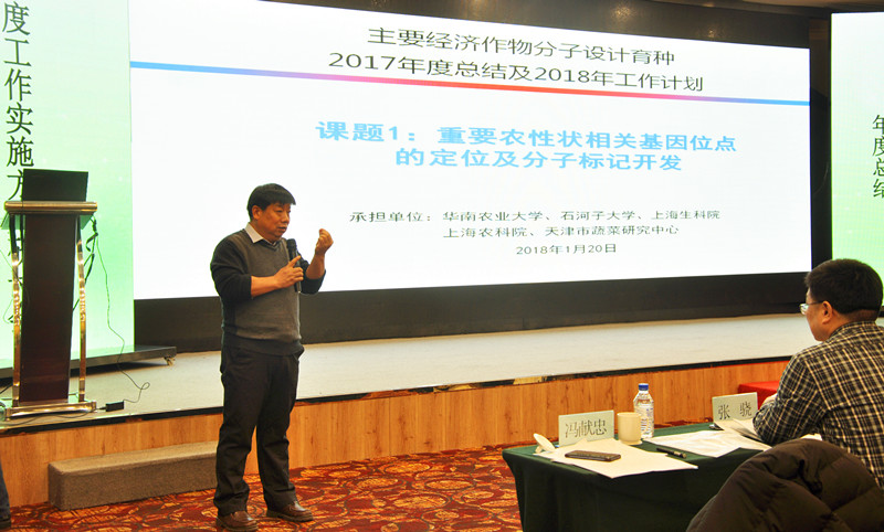 馮獻(xiàn)忠匯報(bào)了項(xiàng)目概況、2017年度項(xiàng)目研究進(jìn)展、2018年度項(xiàng)目實(shí)施方案、項(xiàng)目經(jīng)費(fèi)執(zhí)行情況、項(xiàng)目組織管理情況及項(xiàng)目中存在的問(wèn)題及對(duì)策等情況;天津市蔬菜研究中心魏愛(ài)民研究員、河南大學(xué)的張驍教授、馮獻(xiàn)忠研究員、華南植物園的區(qū)永祥研究員和陜西省雜交油菜研究中心的穆建新研究員分別代表五個(gè)課題匯報(bào)了2017年度課題總結(jié)及2018年度課題工作計(jì)劃實(shí)施方案。針對(duì)各課題的匯報(bào)情況,項(xiàng)目組開(kāi)展了專題討論研究,進(jìn)一步完善了項(xiàng)目和課題的實(shí)施方案。
