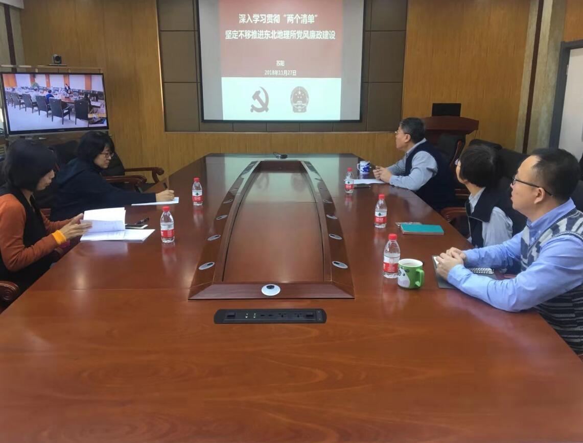黨委書(shū)記蘇陽(yáng)作題為《深入學(xué)習(xí)貫徹“兩個(gè)清單” 堅(jiān)定不移推進(jìn)東北地理所黨風(fēng)廉政建設(shè)》的報(bào)告,帶領(lǐng)與會(huì)人員圍繞黨建工作責(zé)任清單6個(gè)方面26條內(nèi)容,黨員干部廉潔自律負(fù)面清單30條內(nèi)容進(jìn)行逐條研讀,分析其制定的目的與意義。