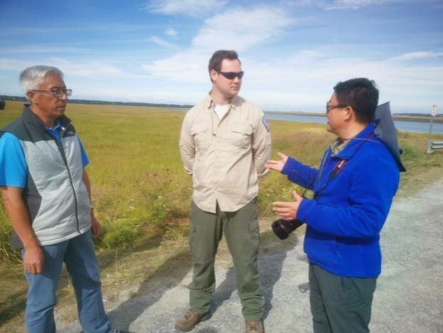 8月1-3日,何興元一行對(duì)阿拉斯加州最大的濕地觀測(cè)試驗(yàn)站--楚加奇濕地公園和最大的濱海濕地分布區(qū)--基奈河口濕地進(jìn)行了現(xiàn)場(chǎng)調(diào)研。在楚加奇濕地公園,詳細(xì)了解了凍土區(qū)濕地野外長(zhǎng)期定位監(jiān)測(cè)及生態(tài)保護(hù)工程,調(diào)研了該區(qū)冰川退化過(guò)程及濕地形成與分布現(xiàn)狀,考察了濕地野生動(dòng)植物資源及棲息地保護(hù)與恢復(fù)現(xiàn)狀。在基奈河口濕地區(qū),實(shí)地考察了河口濕地區(qū)的范圍和邊界、濕地植被恢復(fù)與保護(hù)生態(tài)工程、大型水禽、野生動(dòng)物遷徙及魚(yú)類(lèi)洄游特征及保護(hù)現(xiàn)狀,以及河口濕地漁業(yè)資源開(kāi)發(fā)與可持續(xù)利用相關(guān)措施。