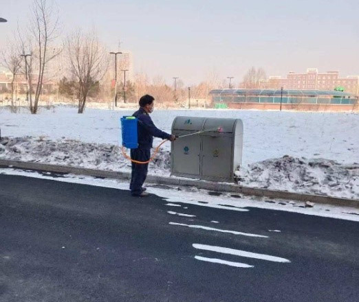 在各辦公樓的樓道總會聞到一股消毒液的味道,雖然味道比較刺鼻,但是會讓職工的心里感到一絲寬慰。每天后勤部門組織人員對所區重點防控部位進行兩次消殺,兩天進行一次全所范圍消殺。