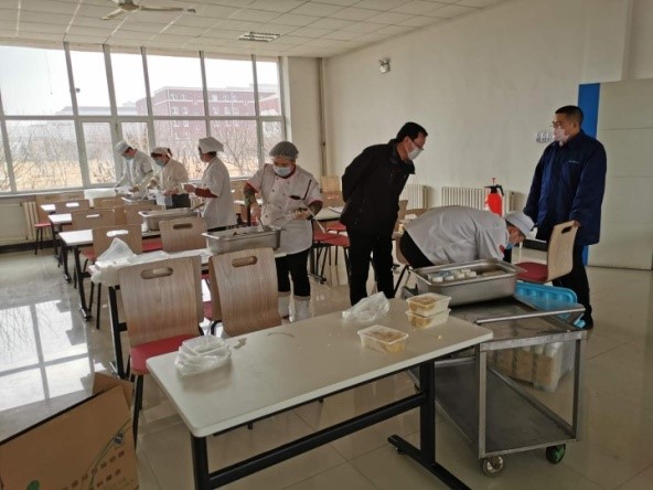 中午時分,后勤和食堂人員已經提前在職工微信群里面發出用餐通知,并按照統計人數把可口的盒飯送到各個辦公樓,員工自取,避免了集中用餐帶來的風險。所領導強調一定要搞好食堂衛生和保障食材來源安全。