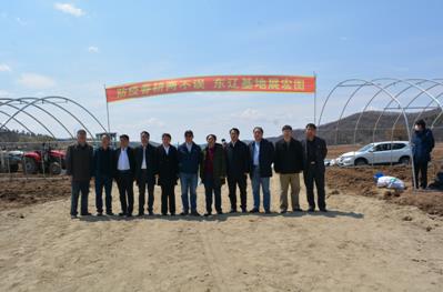 會后,長春分院一行來到遼河源基地種植試驗區,正所謂“人勤春來早,農忙正當時”,試驗田已經是一片熱鬧的農忙景象??吹浇衲甑脑O施農業做的如火如荼,8棟棚室已經建成并發揮了作用,各種經濟作物和新型種植技術正在這里展現。仇景銳對基地工作給予高度評價,經過三年的建設基地面貌有了很大改觀,已經形成規模,并在示范帶動地方經濟方面前進了一大步??吹皆囼灥刂行涯康臈l幅“防疫春耕兩不誤,遼河源基地展宏圖”,調研人員一致認為這是遼河源基地目前的真實寫照,并在標語前合影留念。