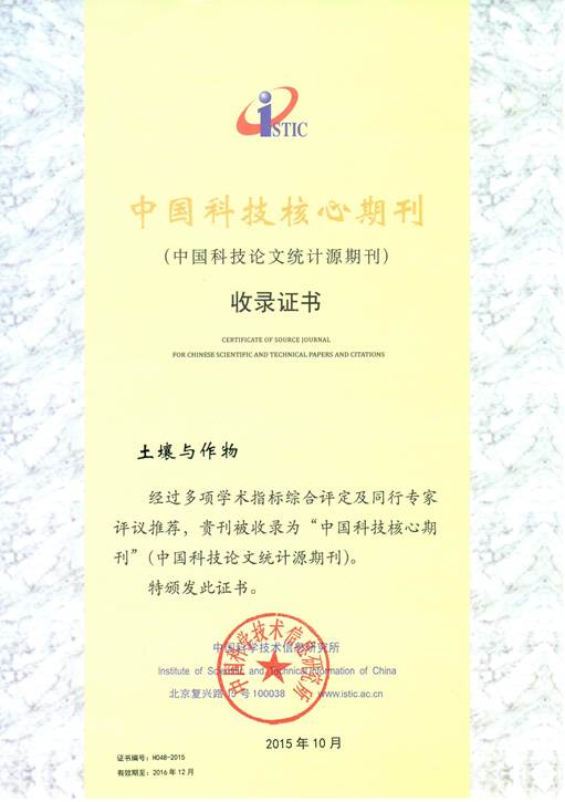 《土壤與作物》被收錄為中國(guó)科技核心期刊
