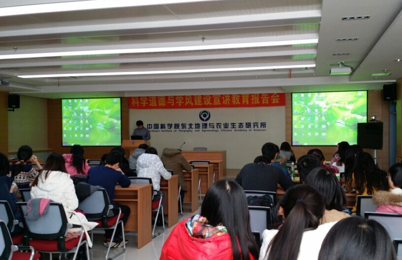 為貫徹落實(shí)中央關(guān)于構(gòu)建社會(huì)主義核心價(jià)值體系、加強(qiáng)社會(huì)誠(chéng)信建設(shè)的要求和部署,弘揚(yáng)東北地理所“團(tuán)結(jié)、務(wù)實(shí)、開(kāi)拓、發(fā)展”的精神,傳承研究所優(yōu)良科研傳統(tǒng)、塑造良好學(xué)術(shù)氛圍,我所研究生黨總支開(kāi)展了以“堅(jiān)守科學(xué)道德,建設(shè)良好學(xué)風(fēng)”為主題的科學(xué)道德與學(xué)風(fēng)建設(shè)宣講報(bào)告活動(dòng)。