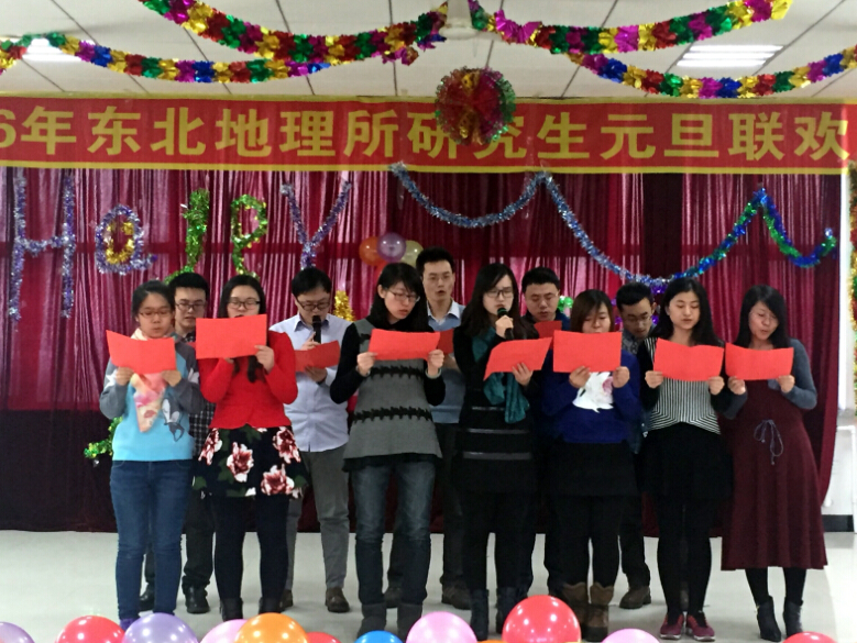 最后,元旦聯(lián)歡會在2013級博士畢業(yè)班的大合唱《東北地理所的日子》中圓滿結(jié)束,全體師生合影留念。整場聯(lián)歡會節(jié)目豐富多彩,全場觀眾沉浸在歡樂的海洋中,緩解了同學(xué)們的壓力,增進了同學(xué)之間的友誼。東北地理所的師生們將以積極向上的精神面貌迎接2016年的到來。