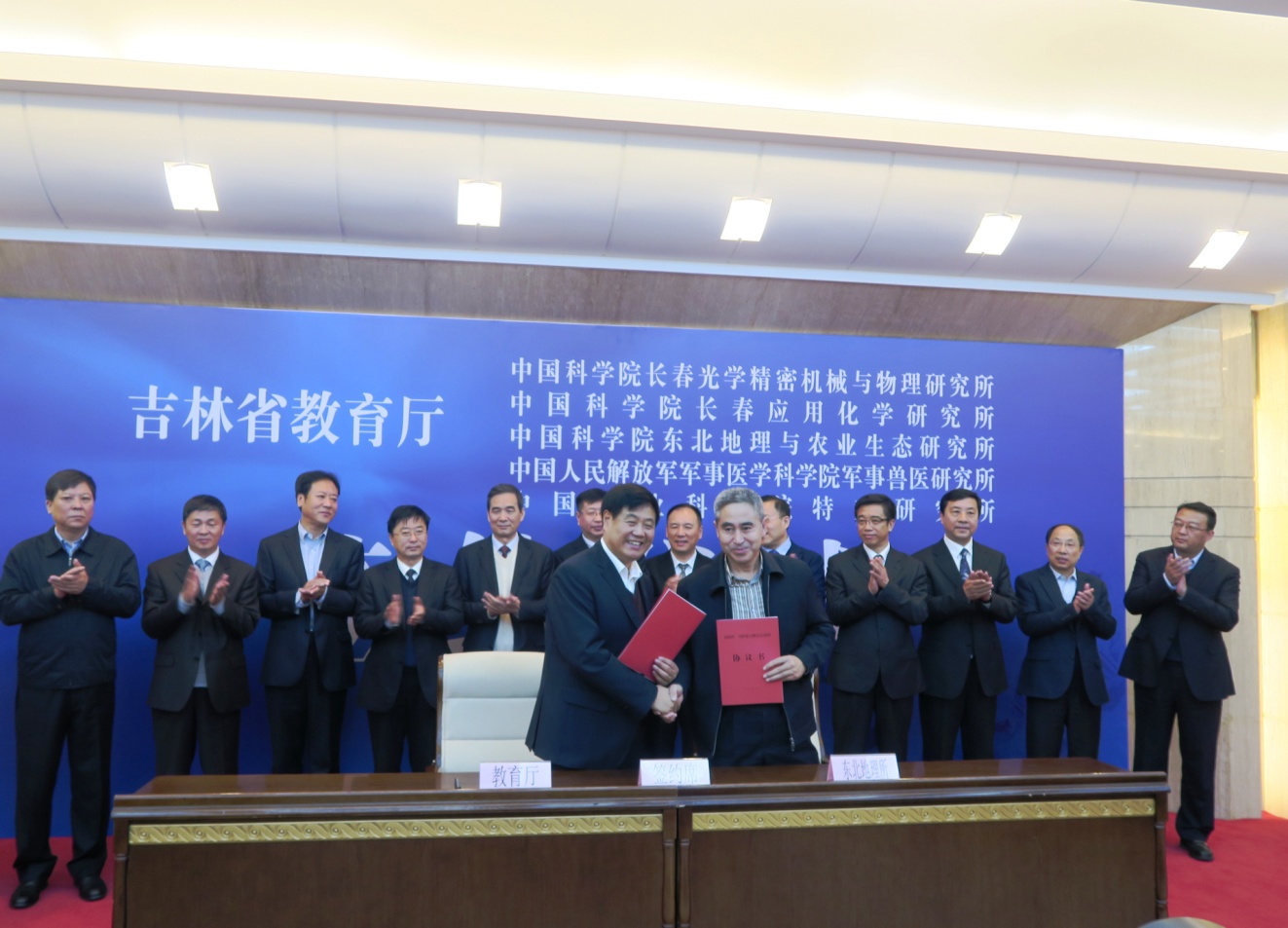 儀式上,吉林省教育廳還與中科院長春光學(xué)精密機(jī)械與物理研究所、中科院長春應(yīng)用化學(xué)研究所、軍事醫(yī)學(xué)科學(xué)院軍事獸醫(yī)研究所及中國農(nóng)業(yè)科學(xué)院特產(chǎn)研究所簽訂了合作協(xié)議。