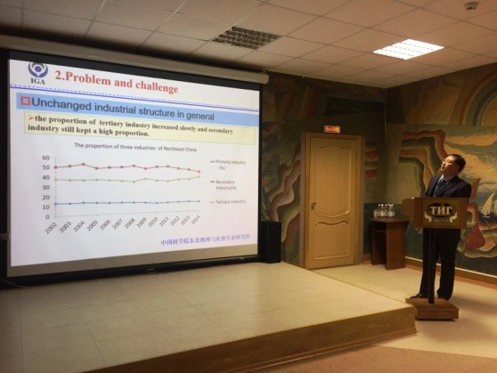 本次會(huì)議針對東北亞地區(qū)經(jīng)濟(jì)一體化及中國實(shí)施“一帶一路”戰(zhàn)略的新形勢,重點(diǎn)研討了東北亞地區(qū)跨國界的水土、濕地和生物資源的現(xiàn)狀及面臨挑戰(zhàn),以及生態(tài)環(huán)境與區(qū)域可持續(xù)發(fā)展等問題。會(huì)議發(fā)表了4個(gè)大會(huì)主題報(bào)告,東北地理所何興元所長、太平洋地理研究所所長Peter Y. Baklanov 院士、水與生態(tài)問題研究所所長Boris A. Voronov通訊院士分別在開幕式致辭并做大會(huì)報(bào)告,張平宇副所長主持了大會(huì)報(bào)告。會(huì)議共發(fā)表59個(gè)分會(huì)場報(bào)告,東北地理所宋長春研究員、姜明研究員、張平宇研究員和毛德華、賈明明、溫鑫博士等青年科研人員分別就濕地對氣候變化的響應(yīng)、濱海及湖泊濕地生態(tài)特征變化及其驅(qū)動(dòng)力分析、東北老工業(yè)基地振興、城市工業(yè)結(jié)構(gòu)優(yōu)化等問題作了學(xué)術(shù)報(bào)告,報(bào)告內(nèi)容充實(shí),匯報(bào)精彩,引起了與會(huì)者廣泛關(guān)注和好評(píng)。