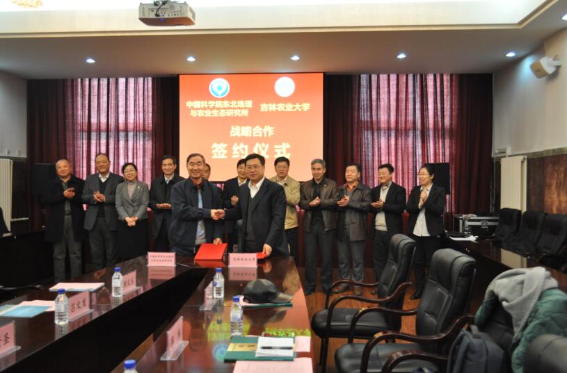 2017年3月29日,東北地理所與吉林農業大學簽署戰略合作協議,何興元所長與馮江校長分別代表雙方簽署戰略合作意向書。吉林省教育廳副廳長蘇忠民、東北地理所黨委書記蘇陽、吉林農業大學黨委書記席岫峰等雙方單位領導出席了簽約儀式。吉林農業大學張越杰副校長主持簽約儀式。