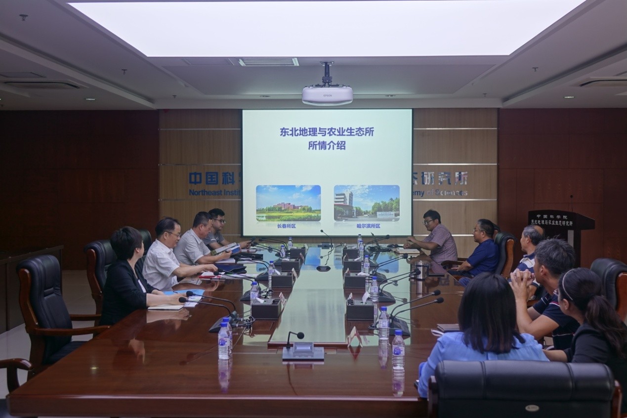 何興元首先代表研究所對李博一行表示熱烈歡迎, 并簡要介紹了東北地理所在東北林區山水林田湖生態恢復關鍵技術集成與示范方面的科技成果情況。武海濤詳細介紹了研究所“十三五”發展情況,并分別對研究所農業領域、濕地生態領域及遙感與區域發展領域科技成果做了重點介紹。宋開山從資源調查、參數反演、林地類型監測以及蟲害監測等方面介紹了森林生態資源遙感監測技術的應用。趙恒田介紹了多個林下經濟作物優勢品種,并表示在禁伐的背景下,大力發展林下經濟對提高經濟效益是十分必要的,同時希望研究所的優勢品種能夠得到推廣和轉化,并建議雙方在山水林田湖方面的科技成果、森林遙感監測技術應用和林下經濟作物品種開發方面盡快開展實地調研,確定合作方向。