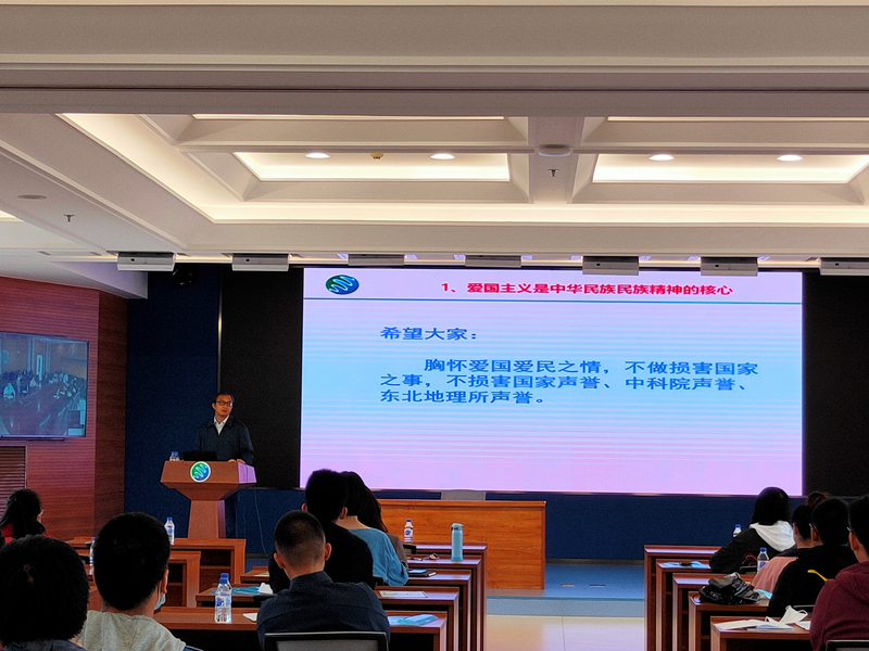 東北地理所副所長王宗明向與會人員做了所情所況介紹。首先,王宗明祝參加本次培訓(xùn)的全體老師和同學(xué)們教師節(jié)快樂,同時對新職工和研究生的到來表示熱烈歡迎,對大家未來的學(xué)習(xí)和工作給予了殷切期望;然后,針對研究所的戰(zhàn)略規(guī)劃、人才隊伍、科研任務(wù)、科研平臺、合作交流、及研究所“十三五”以來重大成果和效益做了詳細(xì)的講解。在此基礎(chǔ)上,王宗明還做了題為《愛國 奉獻(xiàn) 團(tuán)結(jié) 奮斗》的主題講座。希望新職工和研究生在日后的工作、學(xué)習(xí)和生活中能夠胸懷愛國愛民之情,端正世界觀、人生觀、價值觀,弘揚主旋律,傳播正能量,謙虛謹(jǐn)慎,共同創(chuàng)造東北地理所更加美好的未來。