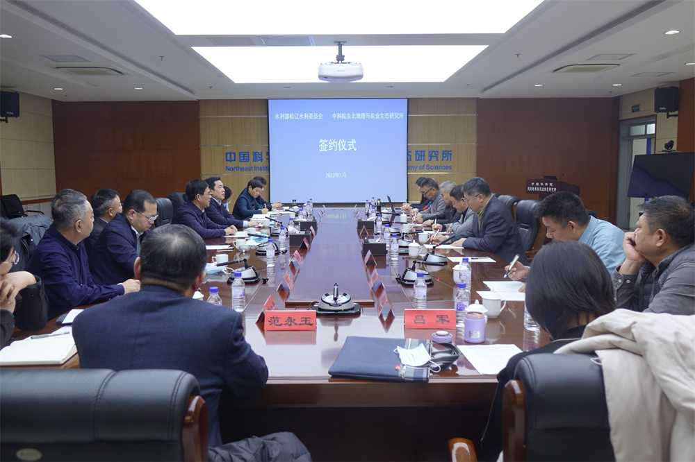 2022年1月11日,東北地理所與水利部松遼水利委員會簽署合作框架協(xié)議,松遼委主任齊玉亮、副主任廉茂慶、副總工李和躍,東北地理所所長姜明、黨委書記蘇陽、副所長李秀軍、武海濤等相關科研、管理人員出席了簽約儀式。