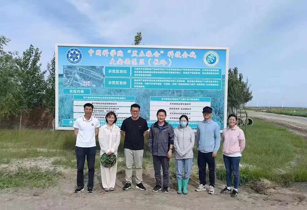 鹽堿地改良與綜合利用是推進(jìn)耕地后備資源開發(fā),提高糧食產(chǎn)量的主要途徑。6月21日,采訪團(tuán)隊(duì)來到“黑土糧倉(cāng)”科技會(huì)戰(zhàn)大安示范區(qū)長(zhǎng)嶺基地,大安示范區(qū)負(fù)責(zé)人黃迎新、長(zhǎng)嶺站副站長(zhǎng)李強(qiáng)向調(diào)研組介紹大安示范區(qū)的總體進(jìn)展和長(zhǎng)嶺基地的技術(shù)示范推廣情況,詳細(xì)講解了覆沙埋秸鹽堿地改良技術(shù)和324淺埋滴灌穩(wěn)產(chǎn)高產(chǎn)技術(shù),展示了在洮南地區(qū)示范應(yīng)用的小麥-燕麥草一年兩季糧飼結(jié)合種植模式的科學(xué)原理及經(jīng)濟(jì)效益。采訪團(tuán)隊(duì)與當(dāng)?shù)剞r(nóng)民深入交流,進(jìn)一步了解到我所技術(shù)在當(dāng)?shù)氐穆淠_扎根帶來的生態(tài)效益和經(jīng)濟(jì)效益雙贏效果。