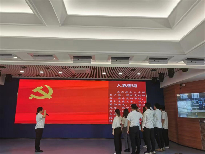 近兩年入黨黨員面向黨旗進(jìn)行了莊嚴(yán)的入黨宣誓。鏗鏘有力的誓言,表達(dá)了他們對黨的無限忠誠和熱愛,以及聽黨話、跟黨走的堅(jiān)定決心。