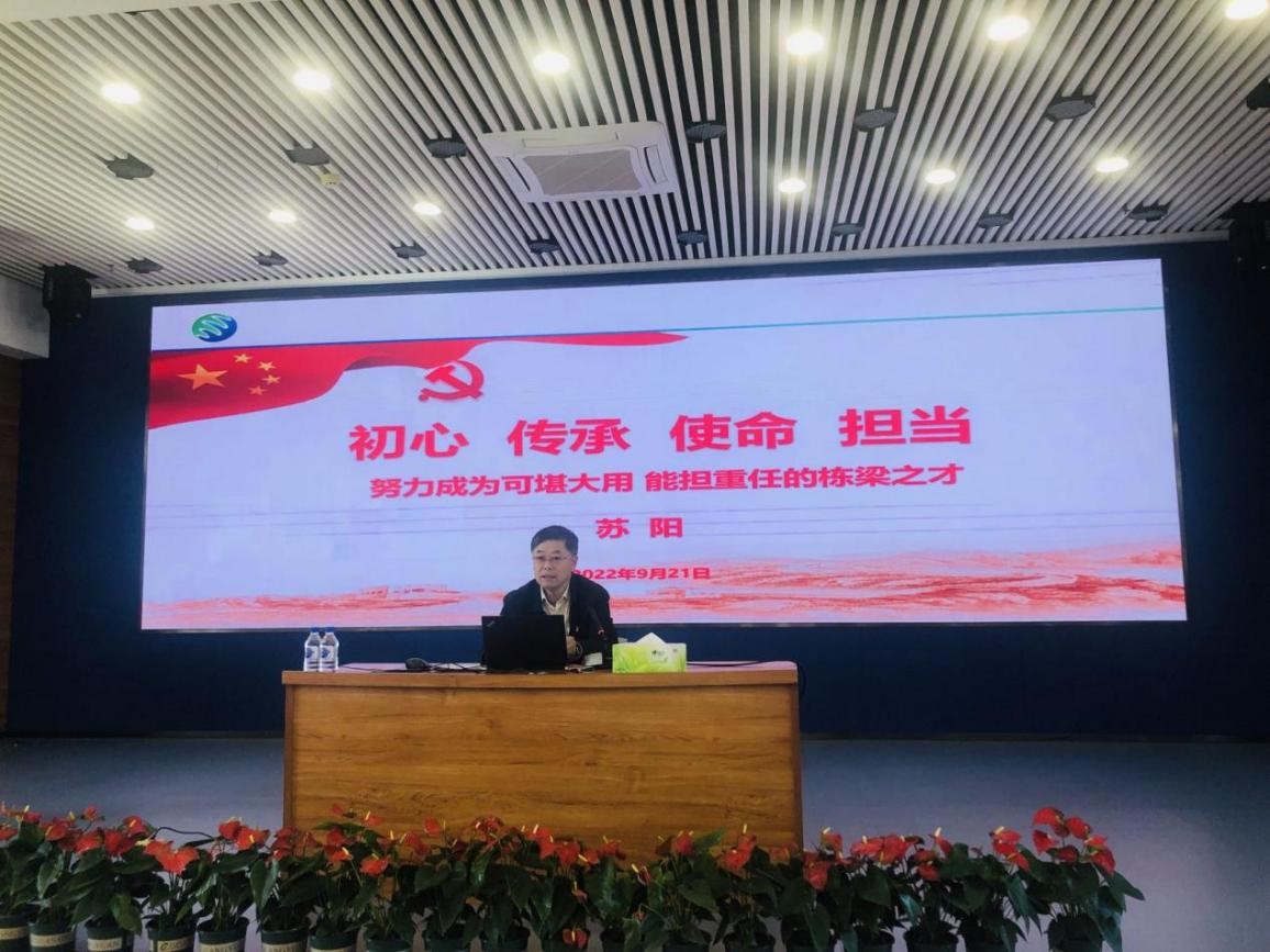 黨委書記蘇陽以“初心、傳承、使命、擔(dān)當(dāng),努力成為可堪大用,能擔(dān)重任的棟梁之才”為題,從歷史傳承、文化積淀,主動擔(dān)當(dāng)、奉獻(xiàn)青春,廣闊天地、大有作為,任重道遠(yuǎn)、砥礪前行等四個部分,與大家暢談當(dāng)代青年人作為國家戰(zhàn)略科技力量如何傳承老一輩科學(xué)家精神、踐行初心使命。蘇陽提出殷切希望,希望青年一代能夠刻苦努力,矢志不渝,牢記使命,繼承和發(fā)揚黨的光榮傳統(tǒng),努力成為可堪大用,能擔(dān)重任的棟梁之才。