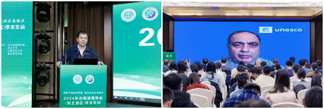 第二階段的會(huì)議主旨報(bào)告會(huì)由東北師范大學(xué)地理科學(xué)學(xué)院院長(zhǎng)白娥教授主持。中國(guó)科學(xué)院青藏高原研究所副所長(zhǎng)李新研究員、中國(guó)科學(xué)院新疆生態(tài)與地理研究所副所長(zhǎng)孫福寶研究員、中國(guó)科學(xué)院地理科學(xué)與資源研究所李召良研究員、東北師范大學(xué)楊青山教授、遼寧師范大學(xué)孫才志教授、中國(guó)科學(xué)院東北地理所姜明研究員分別以中國(guó)冰凍圈變化、融合深度學(xué)習(xí)與物理模型的全球洪水模擬與風(fēng)險(xiǎn)預(yù)估、全球土地覆被變化生物物理反饋的溫度效應(yīng)、基于承接產(chǎn)業(yè)轉(zhuǎn)移視角的經(jīng)濟(jì)欠發(fā)達(dá)城市存量用地治理對(duì)策、關(guān)于加快形成海洋經(jīng)濟(jì)新質(zhì)生產(chǎn)力、黑土地保護(hù)中的地理學(xué)問(wèn)題為主題作大會(huì)報(bào)告。