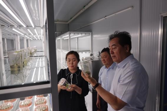 在長春綜合農(nóng)業(yè)試驗站,站長冷建田介紹了臺站的基本情況,詳細匯報了試驗站圍繞“黑土糧倉”科技會戰(zhàn)開展的4種模式、9項技術(shù)科技成果展示情況;在種質(zhì)資源樓,調(diào)研了高通量植物表型組平臺與分子設(shè)計育種工作;在研究所展館,聽取了研究所歷史沿革、學科布局、承擔任務(wù)、科技平臺、人才隊伍、黨建工作及發(fā)展規(guī)劃等情況的介紹。