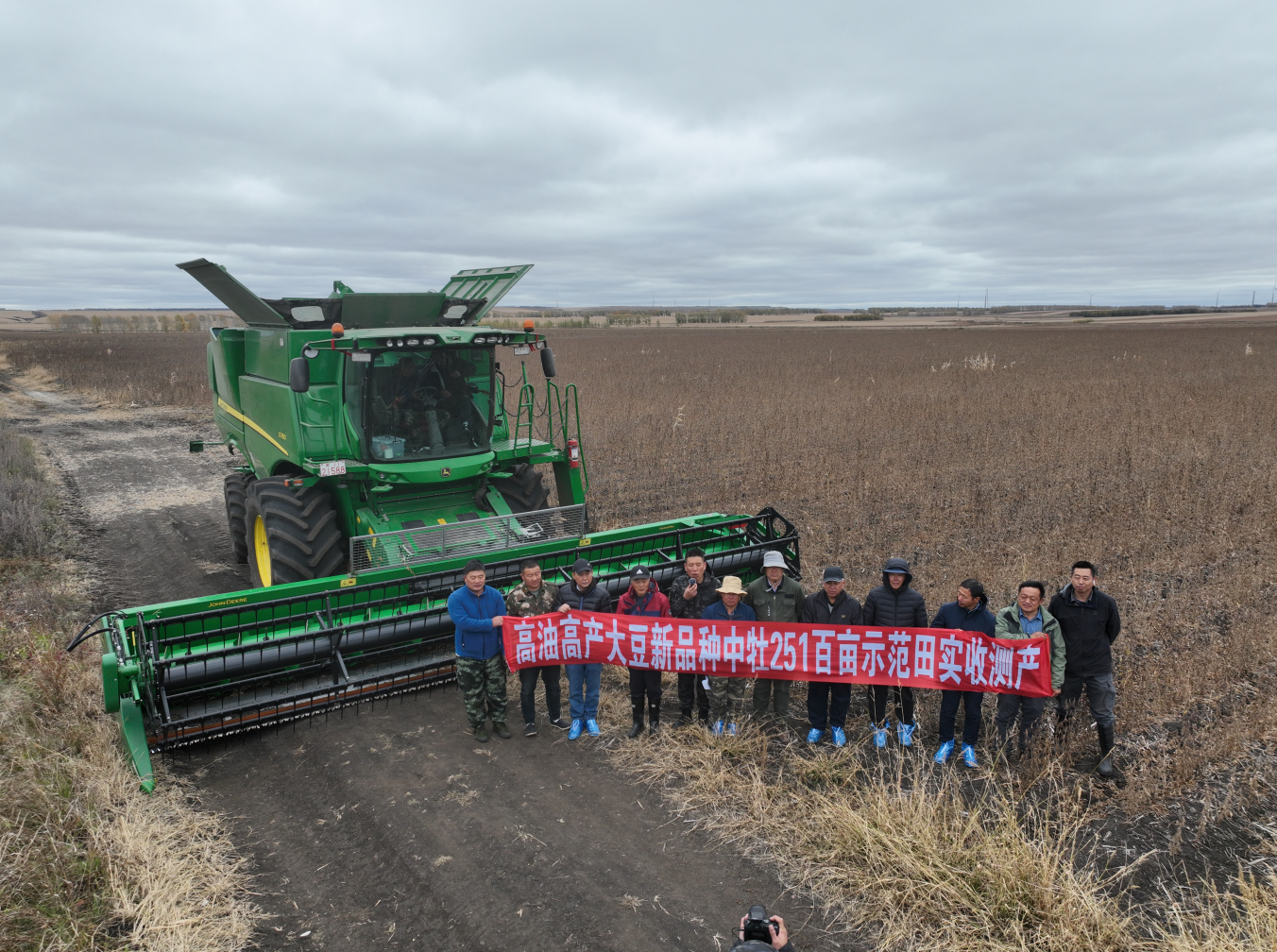 2024年9月30日,在黑龍江省五大連池市,專(zhuān)家組對(duì)中國(guó)科學(xué)院“種子精準(zhǔn)設(shè)計(jì)與創(chuàng)作”A類(lèi)先導(dǎo)專(zhuān)項(xiàng)——“大豆抗旱新品種的精準(zhǔn)設(shè)計(jì)”任務(wù)中培育的大豆新品種“中牡251”百畝示范田進(jìn)行測(cè)產(chǎn)。專(zhuān)家組由黑龍江省農(nóng)業(yè)科學(xué)院綏化分院景玉良研究員任組長(zhǎng),成員有黑龍江省農(nóng)業(yè)科學(xué)院大豆研究所王廣金研究員、黑龍江省農(nóng)業(yè)科學(xué)院柴永山研究員、黑龍江省農(nóng)業(yè)科學(xué)院克山分院張勇副研究員。