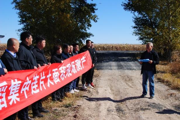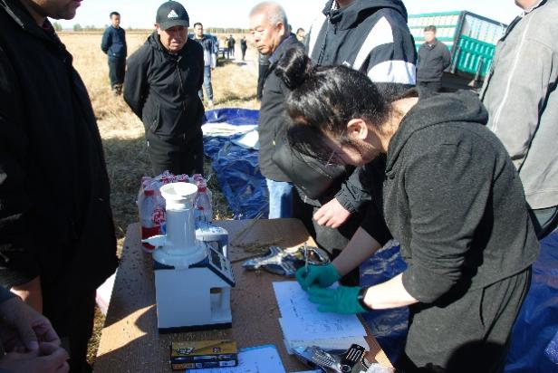 在扎賚特旗圖牧吉鎮(zhèn)青龍山嘎查的重度鹽堿地新墾稻田示范點,黃立華研究員簡要介紹了該區(qū)域的土地特點,這里的土壤90%以上為重度蘇打鹽堿土,開墾前土壤平均pH達10.17,全鹽量在0.5%以上,主要養(yǎng)分含量水平較低,科研人員在這里主要實施了降堿擴容技術,通過撒施磷石膏降低土壤堿化度,增施農(nóng)家肥提升有機質(zhì)含量,輔助施用微生物菌劑活化土壤,提高養(yǎng)分有效性等,經(jīng)2年的技術示范應用,土壤pH平均降至9.6左右,土壤養(yǎng)分含量也得到顯著提升。經(jīng)現(xiàn)場大面積機收測產(chǎn)、稱重去雜、折算成14.5%標準水后,應用重度鹽堿地降堿擴容種稻技術的田塊水稻產(chǎn)量達到327.26公斤/畝,農(nóng)戶常規(guī)種植(對照田塊)水稻產(chǎn)量僅為156.58公斤/畝,增產(chǎn)了109.0%,增產(chǎn)效果顯著。技術示范依托企業(yè)--扎賚特旗五道河子農(nóng)牧專業(yè)合作社負責人、全國人大代表杜崗表示,該技術的應用為周邊重度鹽堿地改良種稻和糧食穩(wěn)步增產(chǎn)發(fā)揮了很好的科技示范作用。