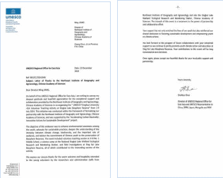 近日,東北地理所收到聯(lián)合國教科文組織(UNESCO)東亞地區(qū)辦事處發(fā)來的官方感謝信,對研究所長期以來開展國際學(xué)術(shù)交流和青年活動等工作的努力和貢獻(xiàn)表示感謝,聯(lián)合國教科文組織東亞地區(qū)辦事處主任,聯(lián)合國教科文組織駐朝鮮民主主義人民共和國、日本國、蒙古國、中華人民共和國及大韓民國代表夏澤翰教授為感謝信署名。