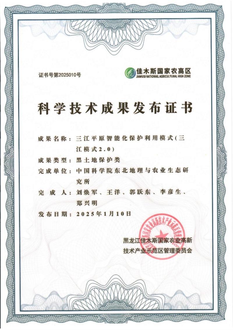 2025年1月10日,2025年佳木斯國家農(nóng)高區(qū)新技術(shù)、新成果、新產(chǎn)品發(fā)布會在建三江米都大廈成功舉辦。發(fā)布會上,三江示范區(qū)發(fā)布三江平原智能化保護利用模式(三江模式2.0)、全場景智能施肥技術(shù)體系、“海綿農(nóng)田”黑土地保護系統(tǒng)解決方案、北大荒“地塊畫像”數(shù)據(jù)集等6項技術(shù)。中國科學(xué)院東北地理與農(nóng)業(yè)生態(tài)研究所重大項目辦公室李鶴副主任和三江示范區(qū)技術(shù)負責人王洋研究員參加了此次成果發(fā)布。