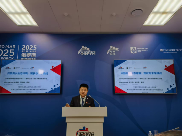 在論壇專題研討環節,代表團積極參與了"阿穆爾河千年之河:生態發展的優先事項"和"大烏蘇里島:跨境合作發展的新方向"兩場分論壇。袁宇翔副研究員做了題為"興凱湖水生態環境:現狀與未來挑戰"專題報告,系統闡述了中國在興凱湖生態保護方面的創新實踐,并就加強中俄跨境湖泊生物多樣性保護、推動區域生態環境協同治理提出建設性建議。