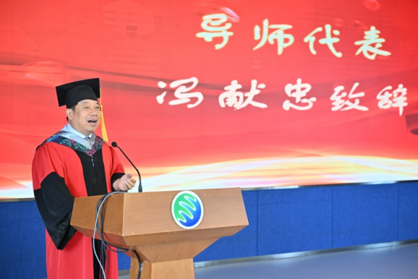 博士生導(dǎo)師馮獻(xiàn)忠研究員代表研究生導(dǎo)師在畢業(yè)典禮上發(fā)言。他欣慰于畢業(yè)生們的成長(zhǎng),他寄語(yǔ)同學(xué)們,要腳踏大地、仰望星空,要滿懷信仰、志存高遠(yuǎn),要在屬于自己的蒼穹下,書(shū)寫(xiě)出劃破天際的璀璨人生!