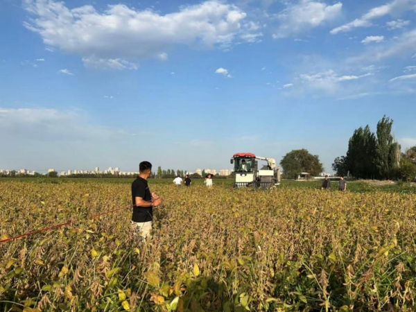 2025年8月30日,在新疆農墾科學院石河子基地,專家組對劉寶輝團隊承擔的“北方大豆高產新種質創制與應用項目中任務—早熟高產、理想株型種質創制”任務(2021YFD1201101-02)中理想株型種質“中牡260”(北豆40熟期組)小面積示范田進行測產。專家組由中國農業科學院油料作物研究所周新安研究員任組長、成員有新疆農墾科學院研究員戰勇、新疆農業科學院研究員叢花、石河子大學教授劉峰、黑龍江省農業科學院牡丹江分院研究員任海祥。大豆育種專家杜維廣研究員、國家重點研發計劃項目負責人張淑珍教授、東北地理所大豆分子育種學科組翟紅研究員等全程參加本次測產。