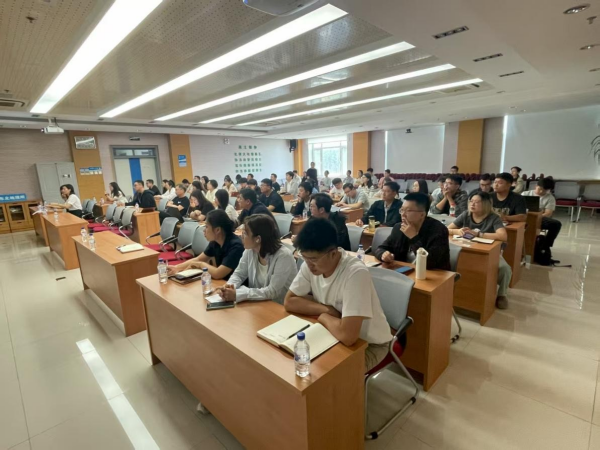 王宗明書記做專題報告。他詳細介紹了研究所的發展歷程、學科建設成就以及科研布局,使新職工清晰了解研究所的整體狀況。隨后,他運用大量史實與確切數據,為新職工開展了一場既生動又深刻的愛國主義教育,引發了大家對如何在研究所搶占科技制高點過程中實現個人理想價值的深度思索。