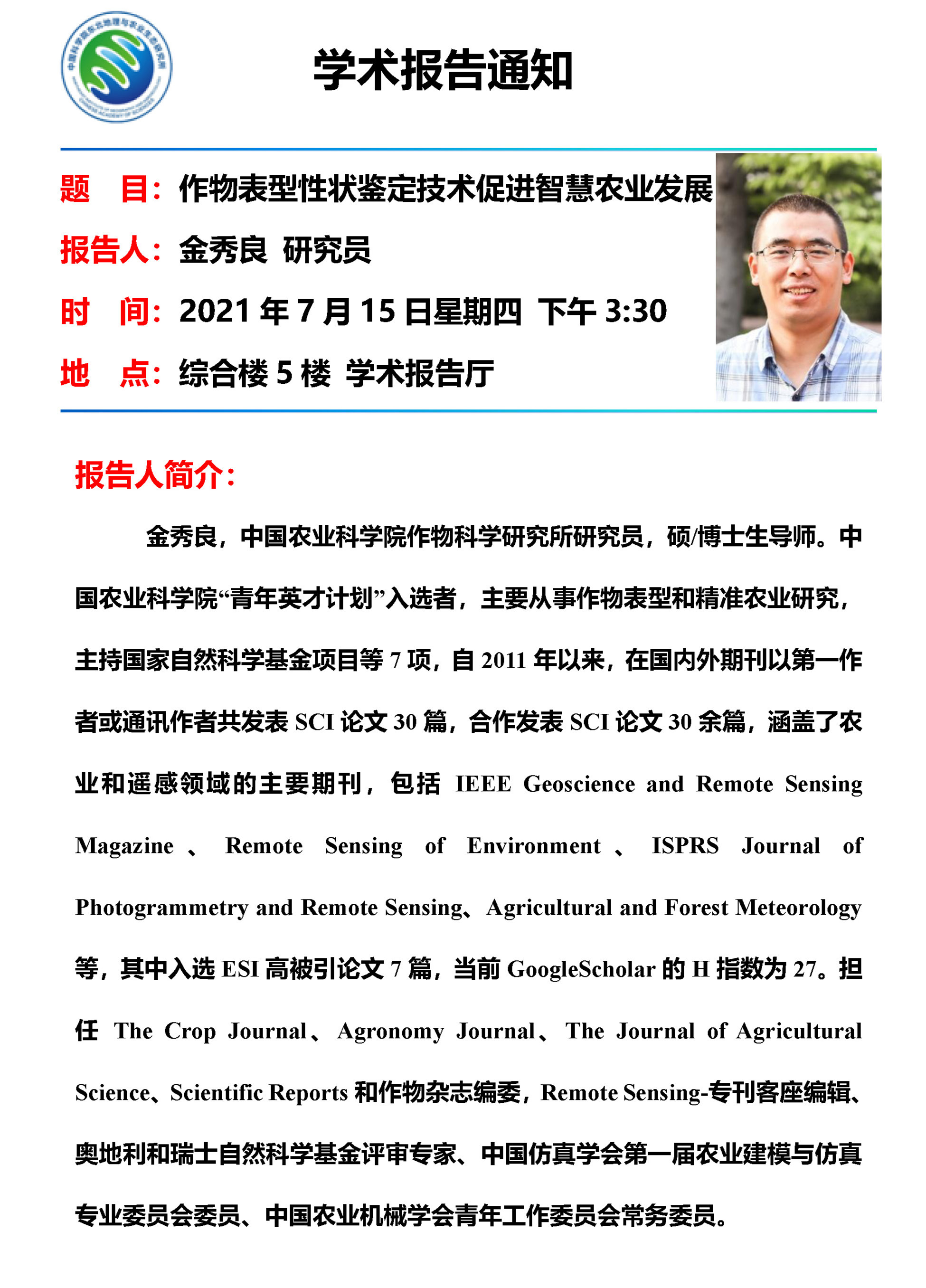 作物表型性狀鑒定技術促進智慧農業發展-金秀良 研究員
