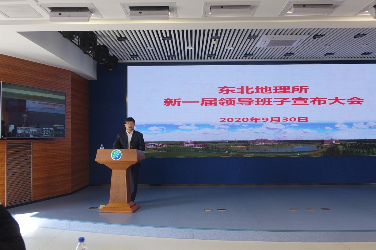 2020年9月30日,中國科學院東北地理與農業生態研究所召開了新一屆領導班子宣布大會。中國科學院長春分院分黨組書記、副院長馬七軍,院長甘建國,副院長劉曉冰,組織人事處處長彥飛,東北地理所領導班子成員、院士、黨委委員、紀委委員、管理部門正副職、實驗室(中心)正副主任、黨支部(黨總支)書記、正高級專業技術人員、副高級專業技術人員、管理部門全體人員、工會代表、離退休職工代表、研究生代表等170余人參加本次會議。會議由馬七軍主持。