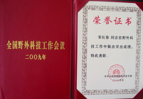 2009年6月16日,科技部在北京組織召開全國首次野外科技工作會議,對在野外科技工作中做出突出成績的先進集體和個人進行了表彰。我所三江平原沼澤濕地生態試驗站站長宋長春研究員,海倫農田生態系統國家野外研究站站長韓曉增研究員喜獲“全國野外科技工作先進個人”稱號。