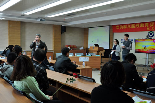 首先,李秀軍處長做了開場致辭,表達了對于研究生開展黨的群眾路線教育實踐活動的大力支持。同時,也強調要進一步推進我所黨的群眾路線教育實踐活動,教育引導廣大學生黨員樹立群眾路線的觀點。