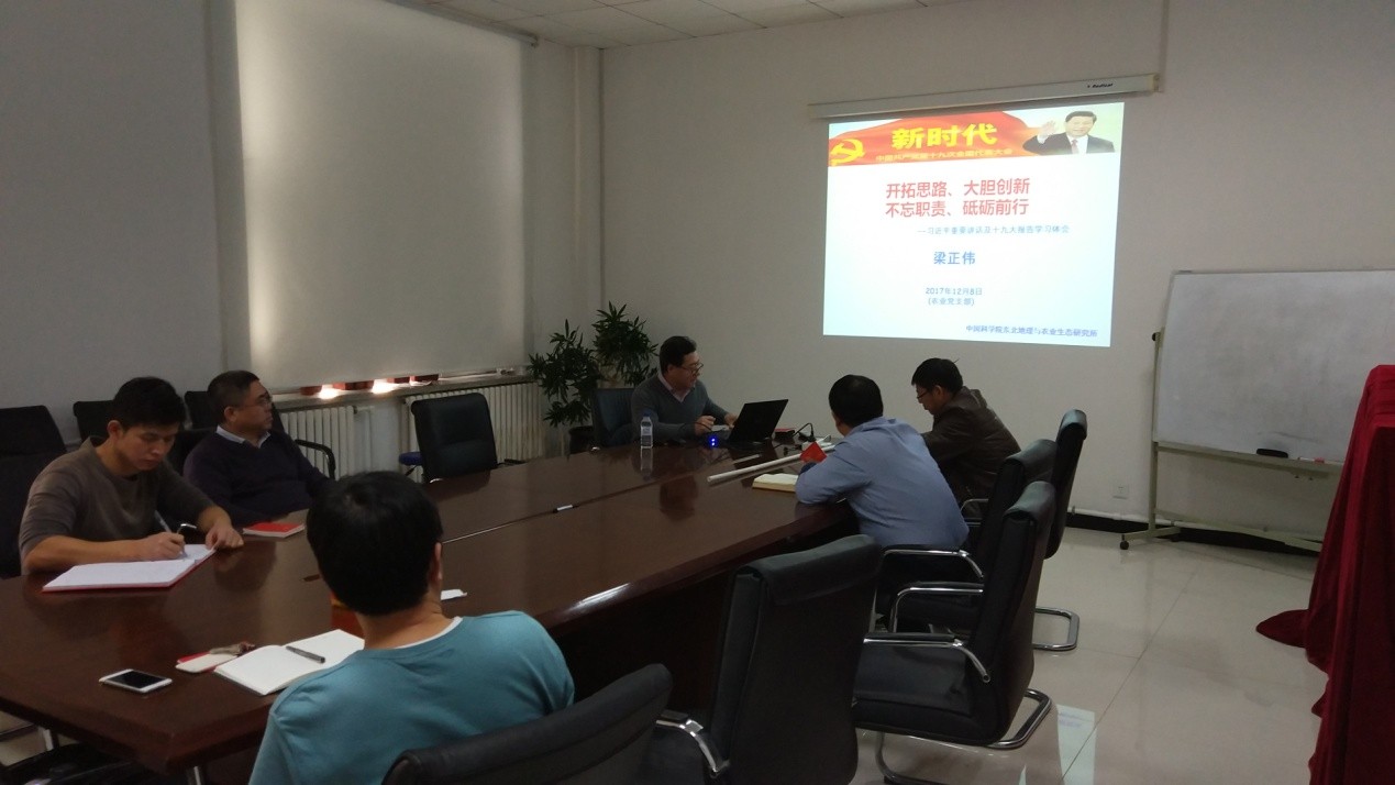 12月25日下午,農業黨支部“研究員宣講團”活動召開第一次專題研討會,邀請大安堿地生態試驗站站長梁正偉研究員做學習十九大精神專題報告。馮獻忠研究員、王洋研究員以及李向楠研究員等16人參加了會議。