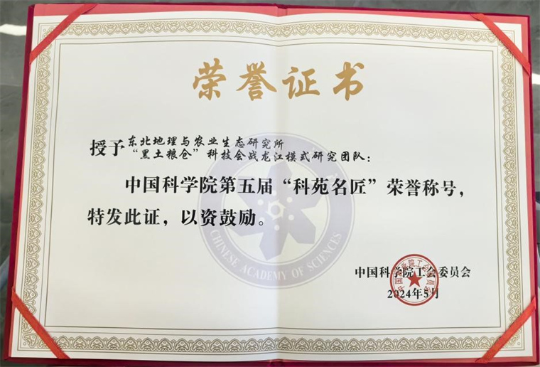 2024年5月17日,中國(guó)科學(xué)院第五屆“科苑名匠”發(fā)布活動(dòng)在京舉行,我所“黑土糧倉(cāng)”科技會(huì)戰(zhàn)龍江模式研究團(tuán)隊(duì)喜獲中國(guó)科學(xué)院第五屆“科苑名匠”稱號(hào)。