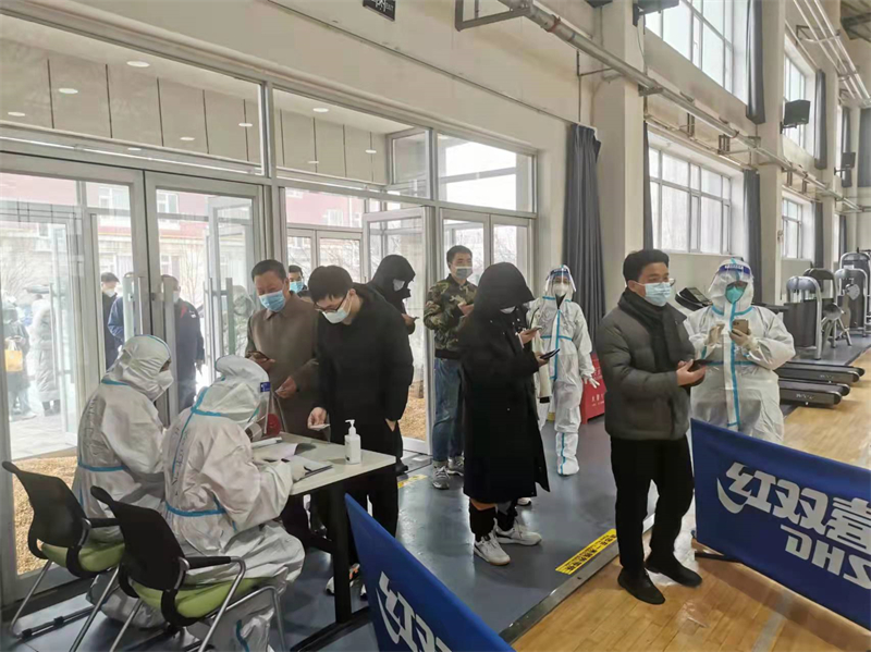 黨員干部帶頭做志愿服務,配合社區防疫人員組織所內職工及家屬、研究生開展核酸檢測。
