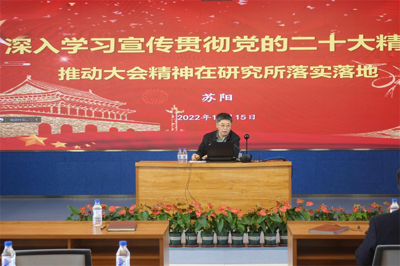 會(huì)上,蘇陽(yáng)介紹了中國(guó)共產(chǎn)黨第二十次全國(guó)代表大會(huì)的概況,并結(jié)合本所實(shí)際工作從重要意義、偉大成就、目標(biāo)任務(wù)、謀劃部署、責(zé)任使命5個(gè)方面對(duì)黨的二十大精神進(jìn)行了詳細(xì)解讀。對(duì)標(biāo)黨中央學(xué)習(xí)要求、院黨組學(xué)習(xí)部署,對(duì)本所學(xué)習(xí)宣傳貫徹黨的二十大精神進(jìn)行了系統(tǒng)部署。