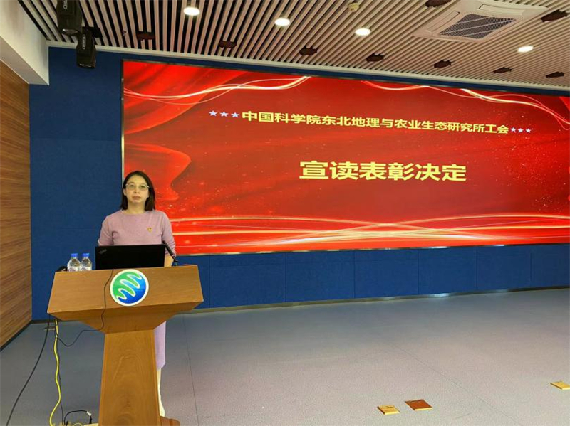 李穎宣讀了《中國科學院東北地理與農業生態研究所工會委員會關于表彰2022年度“優秀工會工作者、優秀工會積極分子”的決定》。王曉慧、王宗明、張嬛、李穎分別為優秀工會工作者和優秀工會積極分子頒發證書。