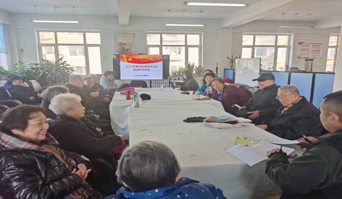 2021年12月8日上午,離退休黨總支在離退休活動室召開第四季度支部黨員大會學習黨的十九屆六中全會精神。離退休黨支部32名黨員參加了本次會議,會議由黨總支書記王玉榮主持。